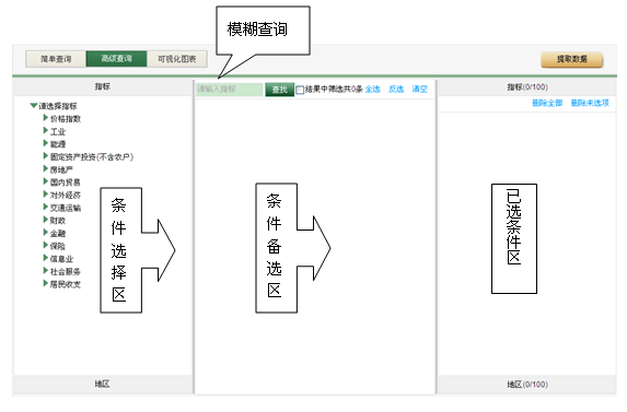 在"备选指标区",用户单击鼠标左键选择某一指标,按住Ctrl键实现不连续多选,按住Shift键实现连续多选。