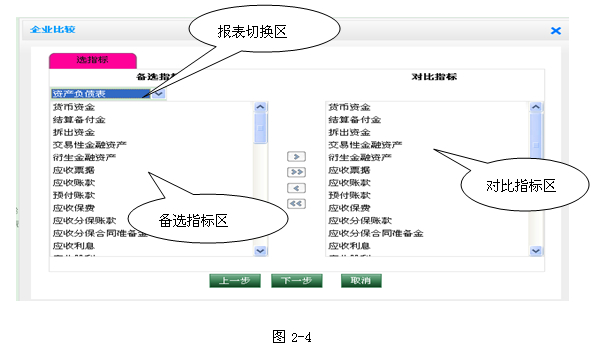 完成"选公司"之后,在图2-3中点击下一步"选指标"标签,界面切换如下: